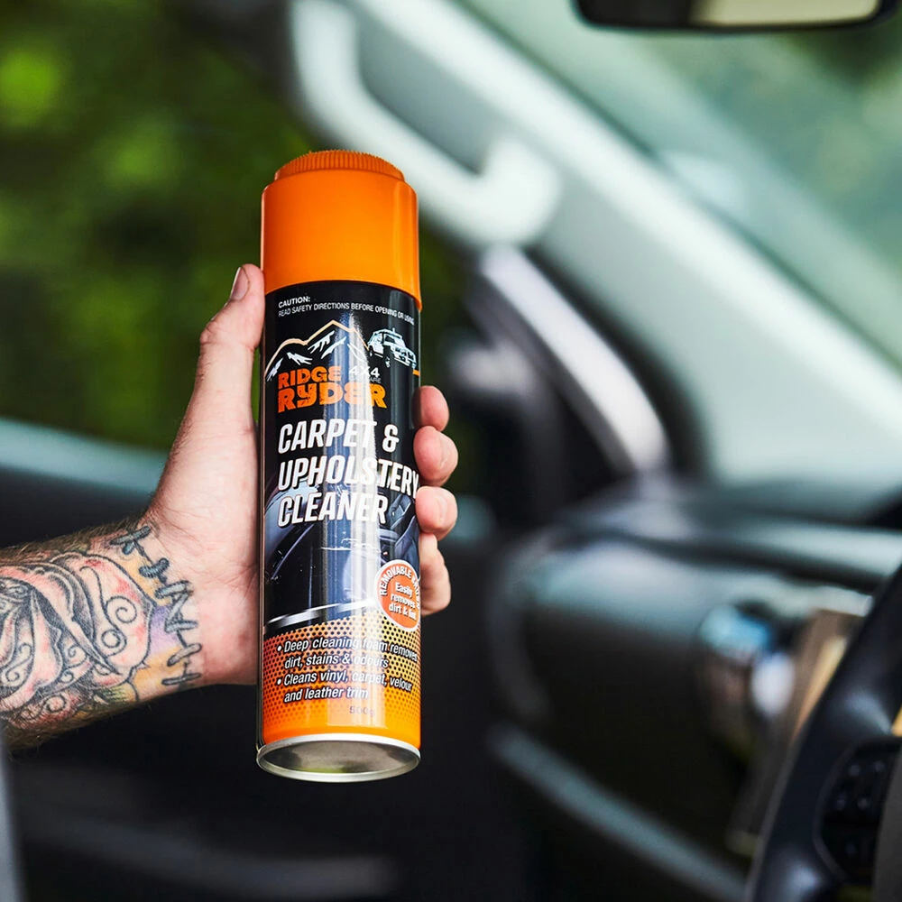 Ridge Ryder Upholstery Cleaner has been specially formulated to clean all types of car interiors including vinyl, carpet, velour and leather trim. Suitable for 4×4 interiors after a day out in the bush, beach or outback, cleans muddy and dusty surfaces with ease. It can help tackle stains, and can even help with foul odours.